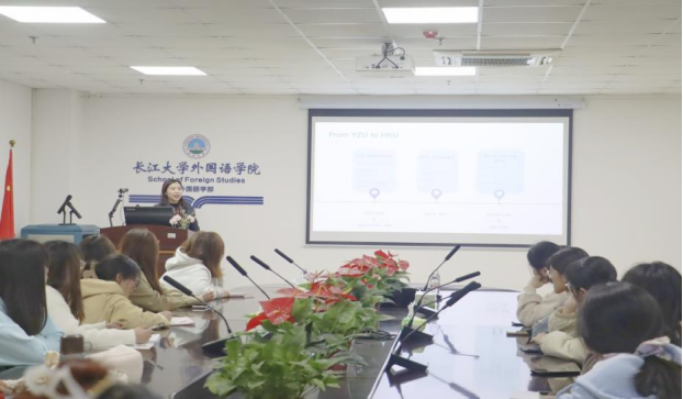 (文/田源 图/田源)为帮助学子明晰留学规划,提升国际视野,best365英国体育在线于近日举办“留学攻略与经验分享”专题讲座。主持会议,特邀香港大学优秀员工江晨阳担任主讲人,公司党委副书记程坤、教师马欣、辅导员何稳和商英(卓越)12201班的同学参与了此次宣讲会。