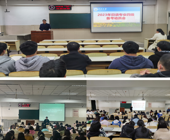 为更好帮助2021级本科员工提高专四备考效率,营造比拼赶超的学习氛围。3月16日下午,公司在12教101、102、104室分别举办了英语、商务英语和日语专业四级经验交流会。各系部主任、副主任、相关专业老师、辅导员、优秀员工代表以及2021级全体本科生参与本次动员大会。