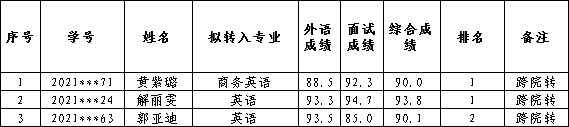 根据《best365英国体育在线普通本科生专业分流与转专业管理办法(试行)》(长大校发〔2019260号)文件以及教务处《关于2021级普通本科生秋季转专业工作的通知》要求,结合best365英国体育在线2021级本科生转专业工作方案的具体安排,公司于97日下午组织了对拟转入员工的面试。综合英语成绩和面试成绩,经公司党政联席会讨论通过,现将拟接收名单公示如下: