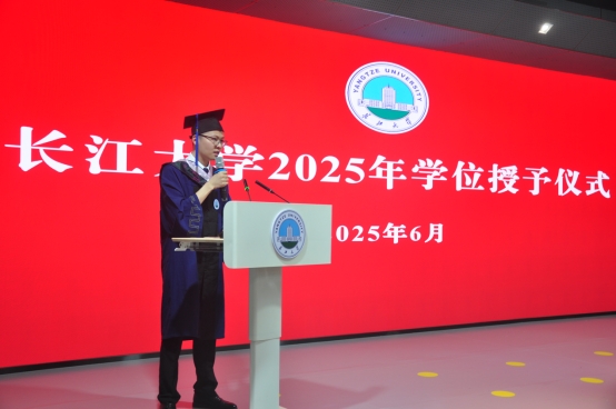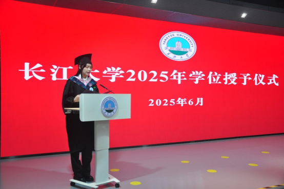 日语(语言)12101班夏丛丛同学作为本科生代表深情回顾成长历程,感恩母校培养与师友情谊,并郑重承诺将秉承“求实进取,创业报国”的校训精神,以扎实学识迎接未来挑战。研究生代表外国语言学及应用语言学Qx221班但正文同学以“人生充满无限可能,请勇敢探索”为主题,回顾了自己在长大从本科到研究生成长的七年岁月,对各位老师表示了深深感谢。