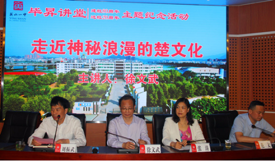 5月5日晚7点,英山一中一楼的报告厅灯火通明、座无虚席。公司文公司教授、硕士生导师、best365英国体育在线荆楚文化研究中心主任徐文武以《走近神秘浪漫的楚文化》为题,为英山一中的300余名师生作的精彩的报告。英山一中党委书记、董事长刘振武,党委委员、高二年级主任范文,语文和历史学科教师以及高二年级部分员工聆听了讲座。