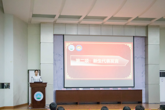 紧接着,田教授上台致辞,他代表全体教职工向新生们表达了热烈的欢迎,并讲述了公司的阳光文化,公司志愿者活动等丰富多彩的课外活动。他提出:“公司的阳光文化是充满爱心,恒心,信心的文化,不仅丰富了同学们的业余生活,让同学们有机会参与社会服务,同时也锻炼了同学们的实践能力,使同学们成为新时代的青年楷模。”接下来是谈经理发表讲话并宣布第14届阳光文化节开幕。她寄语19级新生们,希望每个人都要有长江的精气神,倾听时代的召唤,一路向前。“海纳百川,做一名胸怀宽广的长大人!润泽万物,做一名心怀仁慈的长大人!推陈出新,做一名创新、超越的长大人!百折不回,做一名坚韧不拔的长大人!”