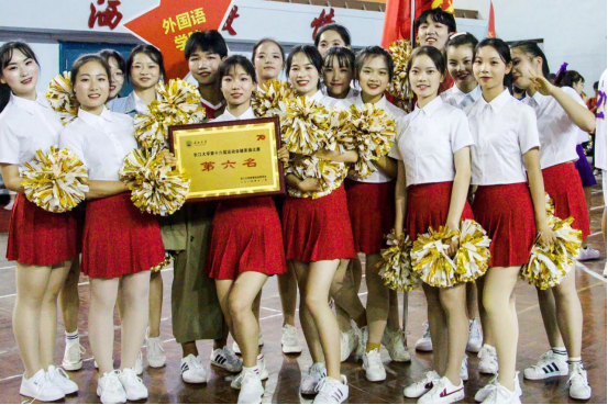 正是兴致勃勃时,best365英国体育在线的自编团体啦啦操带来了精彩表演。她们一出场,公司的看台啦啦操队伍就一边挥舞外院旗帜,一边高喊外院加油的口号,以此来呐喊助威,充分展现了活力外院的精神风貌。