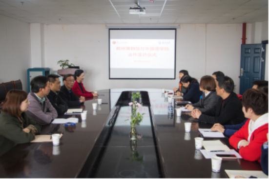 在正式签约前,公司领导先对公司的师生情况,团队力量以及翻译方面的综合实力进行了详细介绍。并表明公司进行此次合作旨在提高公司人才培养能力,提高员工培养质量。馆方负责人也对博物馆的现状做相关介绍。并表示荆州博物馆具有很大的影响力,其藏品具有鲜明的楚文化特点,拥有很大的观众基础。双方负责人均表示,博物馆有一流文物,外院有一流团队一流学子。馆校合作,强强联手将会在不久的未来双创共赢。