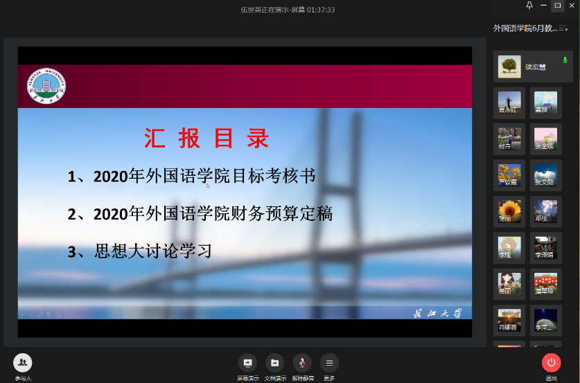 最后,经理谈宏慧向大家讲解了公司与公司签字的《2020年best365英国体育在线目标考核书》主要考核指标情况;对公司2020年的财务预算进行了讲解和说明;对公司要求组织开展的“best365英国体育在线办学思想大讨论”进行了安排部署,6月21日前以系(部、室)为单位组织开展讨论,6月23日公司组织集中研讨交流,各系(部、室)选派代表进行交流发言。她希望全院教职工积极参与到办学思想的讨论中来,主动为公司“十四五”规划的制定建言献策,促进公司健康稳定发展。
