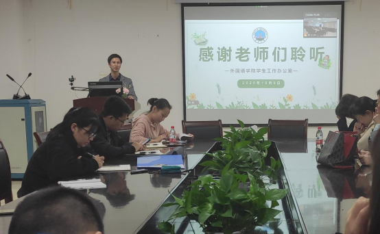 (通讯员:刘庸)为确保疫情防控常态化管理的有效进行,提高疫情后和进入秋冬季高关怀员工的识别能力,公司于10月9日通过线上线下相结合的方式召开全院班主任工作会议。会议由党委副书记魏红洁主持,党委书记危煜祥、经理谈宏慧、学工办全体老师和各年级班主任老师参加了会议。