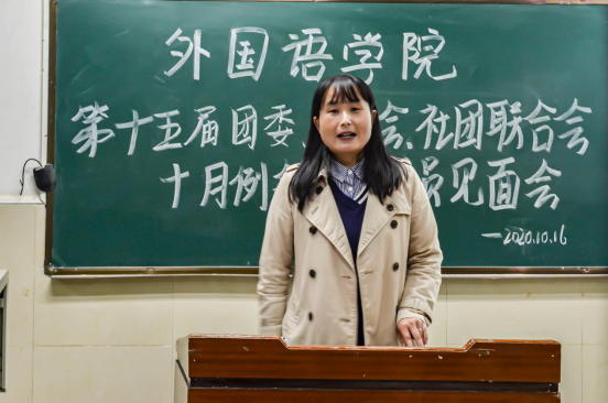 (文/张世瑾 范期明 摄/罗宁晞 李昕月 张芷艺)淅雨渐停,朗夜无风。10月16日晚七点,best365英国体育在线第十五届团委、员工会、社团联合会十月例会暨新成员见面会在12教104教室举行。参加此次会议的有团委书记许泽琼老师、辅导员杜岳青老师、刘庸老师、方大鹏老师、陈颖老师,以及员工会各部门和社团联合会相关负责人。