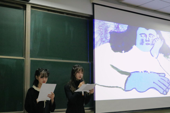 在上半场的比赛中我们看到了舞蹈、乐器、歌曲及英语话剧表演。由商英11802和11904班的两位选手带来的rap 作品《Tricky Trick》节奏感强、表现张力十足,一上场便点燃全场。英语12005班的趣味改编话剧作品《超级小红帽》幽默诙谐、内容丰富。观众欢笑不断,纷纷被大一新生的创造力与活力感染。在下半场比赛中我们看到了独舞、器乐合“唱”、诗朗诵和有趣的相声作品。由日语12002班带来的器乐合“唱”作品《凤凰于飞》余音袅袅,韵味十足。婉转的笛声与悠扬的歌声交织,给人以美的享受。英语12007班的诗朗诵作品《唐诗里的中国》队形整齐,选手们身着古装,用深情的朗诵将我们带回那个梦一般的时代。由商英11902班与英翻11902班的两位选手带了的相声作品《疫情中的故事》朴实含蓄、回味悠长。给观众带来了新的观感体验。最后杜老师就不同类别的作品根据其音准、节奏、舞台表现力、编剧效果对参数作品进行了逐一点评。