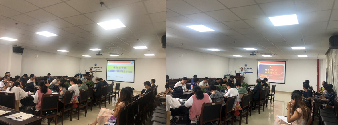 会上,大家一起学习了习近平总书记在庆祝中国共产党成立100周年大会上的讲话、在“七一勋章”颁授仪式上的讲话、在中共中央政治局第三十一次集体学习和参观“不忘初心、牢记使命”中国共产党历史展览时的强调内容,学习了中共湖北省委十一届九次全体会议决议和省委书记应勇与武汉大学师生代表座谈时的讲话精神。