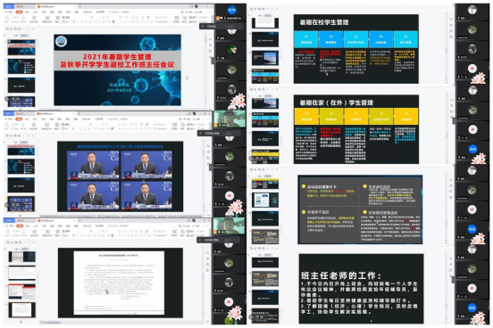 8月3日,根据best365英国体育在线新冠肺炎防控指挥部通告(2021年第1号)文件精神和当前的疫情防控需要,结合公司实际情况,帮助员工增强防护意识,了解暑期员工教育与管理内容,确保秋季开学工作顺利进行,公司组织全体班主任老师、全体本科生和全体研究生举行以“暑期员工管理及秋季开学员工返校工作”主题的班主任会议和班会