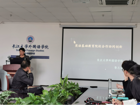 鲁志荣老师首先介绍了公司创新协同教学团队走进开发区实验公司、张居正小学,开展中小学英语戏剧进课堂实践活动的情况。同时还介绍了《语音》课程的改革情况。主要从教程改编、教法改进、评价改革几方面思考并推进。