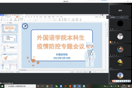 会上,程坤传达了公司疫情防控工作会议的精神,针对目前全国疫情防控局势的逐步加剧,公司已启动疫情防控工作机制,要求责任落实到人,需要积极做好员工各项防疫措施的宣传;其次,他列举了在员工群体中出现的一些典型问题,强调了疫情防控期间的安全风险问题和责任问题;随后,他就公司发布的疫情防控通知中的要求和公司近期将开展的员工安全教育与管理措施进行了说明,希望班主任老师们通过召开线上班会,确保每位同学知晓公司相关疫情防控政策,密切关注员工在生活、思想和学习上的动态。