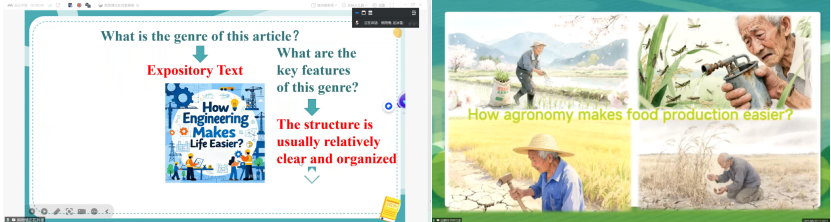 第三组是党蓬祥和胡雅婷针对语篇B进行阅读课型同课异构。东方红中学的张雨玲和英语系王娟Y老师进行点评。张老师认为胡雅婷设计更清晰、接地气,强调阅读课需注重教学构思、学情分析与目标设定,环节应包含情境导入、语言练习、思维升华与拓展迁移。王老师认为党蓬祥在分析工程设备弊端时应更深入,引导员工思考解决方案;同时需提升PPT制作与语言规范性。