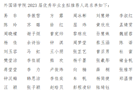 2023届优秀本科毕业生拟推荐人选名单公示