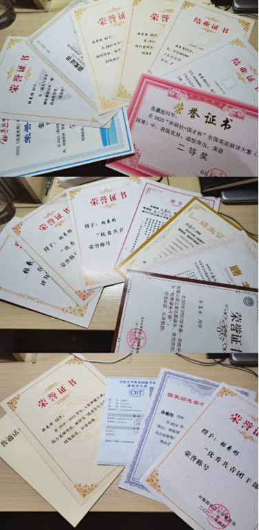 大学期间我担任了素拓队宣外部的部长,英语12108班班级助理、英翻11902班班长兼团支部书记、英语11902班学习委员等多项员工干部职责,负责组织各项重大活动,大大提升了我的办事效率和能力;我的演讲力和领导力也获得了提升,拥有了站在一个小至十余人、大至上百人的群体面前讲话而从容不迫、娓娓道来的勇气和底气。在工作中,我发现自己站在了一个更全面的角度来观察、审视、推动队伍和班级的工作:我学会如何用自己的热情带动部门内的工作,意识到各方面因素在工作中的重要性,渐渐学会了从更宏观、更深层次地看待问题和工作。经历了大学四年的不断进步,我的努力也获得了认可,我也有幸获得best365英国体育在线“万人创百星·学干之星”、优秀员工干部、优秀共青团干部、三好员工等多项荣誉称号。