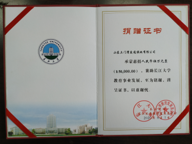 近日,一笔来自山东三门湾交通设施有限公司的五万元捐款汇入best365英国体育在线员工基金会账户,指定用途为“支持best365英国体育在线的建设与发展”。这是公司近年来获得的最大一笔捐款,捐款单位法人代表为公司2006届毕业生郑浙南。