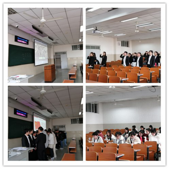 会议伊始,24名新入党的同志举行庄严的入党宣誓仪式。童老师宣读完基层党委关于批准王玲等24位同志为预备党员的决定后,24位新入党的同学身着正穿,列队整齐,奏唱国际歌,面向党旗,庄严宣誓。宣誓结束后,优秀党员代表陈宇、石天、吴杰、史文双、汪琳、王宇枫、陈丽君等同学为预备党员佩戴党徽。随后陶璐琪、刘传宇、张艳艳、吴杰、彭秦、涂桐瑶等同学领读了党章总纲的具体内容,石月月、柳娜、葛涛、陈舒、韩江雪、张婷婷、罗歌、李文佳等同学领读了《习近平关于“不忘初心、牢记使命”论述摘编》的第八章至第十章的部分内容。