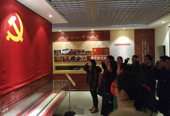 参观结束后,公司党委为刚刚入党的公司副经理谢家成教授举行了庄严的宣誓仪式。在鲜艳的党旗前,谢家成教授举起右拳,向党作出了庄严承诺,其他党员也一起重温了入党誓词。最后,党员们在展览馆前合影留恋。