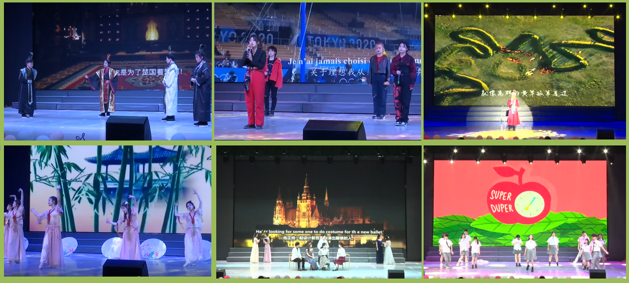 闭幕式文艺汇演在精彩的舞蹈中开场。分为“盛世华章,继往开来,初心难忘谱新曲”“激扬青春,强国有我,英姿奋发正当时”两个篇章。整台晚会彰显特色、突出专业、精彩纷呈,线上观众热情高涨。汉语、英语、日语、俄语、法语5个语种演唱的歌曲《追梦赤子心》,带领观众领略不同语言的魅力;笛萧合奏《无羁》,古风古韵,回味无穷;外文剧团呈现的经典剧作《Midnight in Poris(午夜巴黎)》,地道的英语、绅士且高雅的表演、华丽的场景深深打动着观众们的心;日语配音节目《辉夜姬大小姐》、教师韩艳丽博士倾情演唱的蒙语歌曲《忘不了》等节目全面展示了不同语言的文化底蕴与特色……best365英国体育在线师生用丰富的艺术形式展现多彩校园文化生活。颁奖晚会在合唱《光荣啊,中国共青团》中圆满落幕。