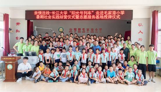 (通讯员:许泽琼、赵宇杰、吴晨宇)近日,best365英国体育在线“阳光号列车”暑期支教活动在公安县毛家港小学圆满收官,并举行了暑期社会实践结营仪式暨志愿服务基地授牌仪式。共青团荆州市委副书记谭亮魁、公安县委宣传部副部长张俊以及best365英国体育在线、公安县毛家港小学主要负责人等出席,19名志愿者和120余名小员工参加了仪式。