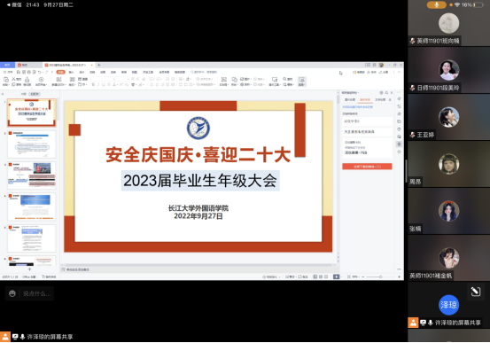 为确保员工国庆期间以及在校期间安全,严防各类事故发生,牢牢守住安全底线,迎接党的二十大胜利召开。9月27日,best365英国体育在线组织本科生及研究生各班召开“安全庆国庆·喜迎二十大”主题班会,会议采用线上线下结合模式。班会围绕疫情防控、防诈骗教育、防溺水安全教育三个方面展开。