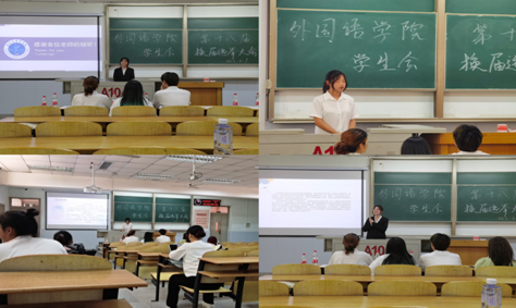 选举大会上,每位竞选同学进行3分钟的自我介绍,其内容包括学干经历、留任理由、竞争优势以及对未来的展望等。随后评委根据竞选者所述内容进行不少于两个问题的提问并给出建议。自我介绍和提问结束后,评审团根据不同意见综合分析,选出了各部门部长、副部长。