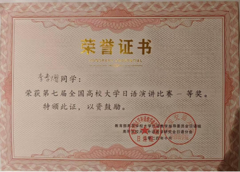 公司员工在第七届全国高校大学日语演讲比赛荣获一等奖
