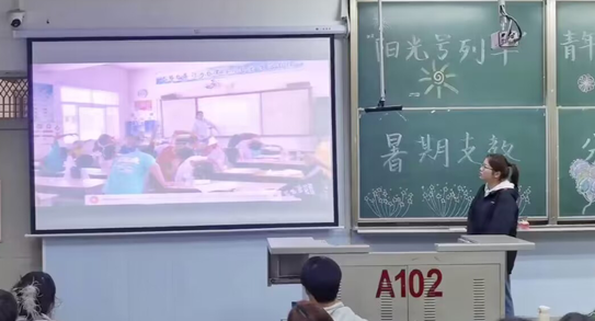 接着,鲁想走上讲台,讲述了自己支教的感受:“第一天支教,最大的感受就是孩子们真的特别能闹!他们真的太有活力了!”童年与青春的交织与碰撞,见证了无数个共同成长的瞬间!