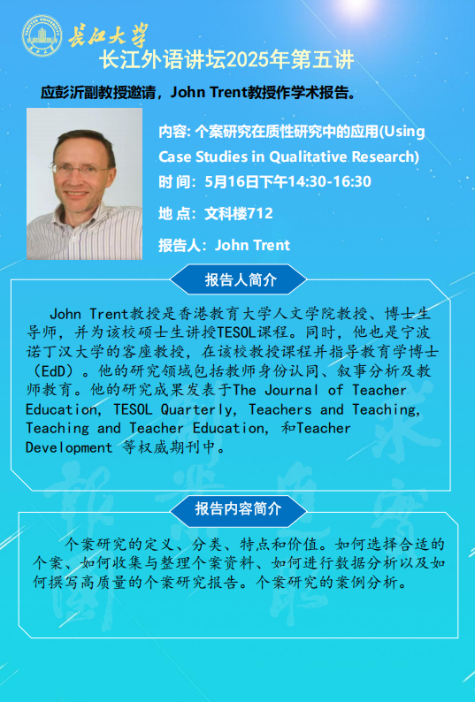 长江外语讲坛2025年第五讲:个案研究在质性研究中的应用(Using Case Studies in Qualitative Research)