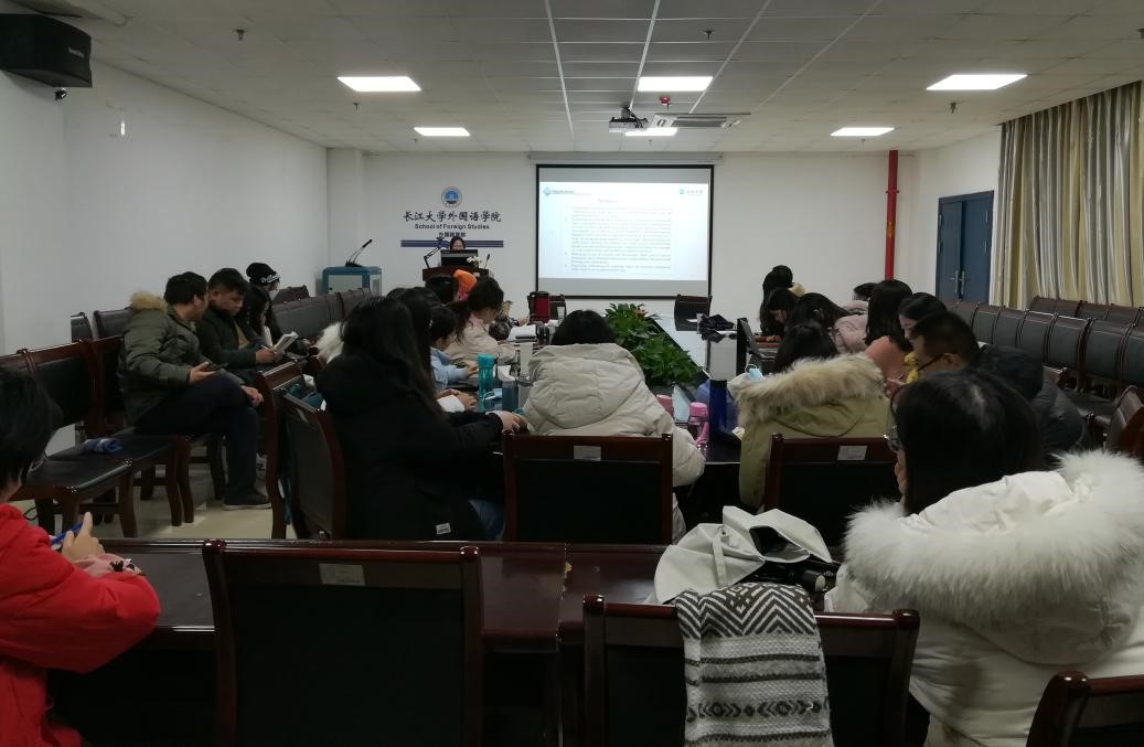 首先,由刘小恋为大家做了主题为搭配习得中的认知分析的汇报。她先为大家介绍了搭配习得认知分析领域的研究背景,包括:固定搭配的定义和使用;固定搭配的学习;相关教材和书籍的发展;主要学者运用不同的方法对搭配所下的定义等。接着,在文献综述的部分她经过文献分析总结出:搭配的规律是随意的是有迹可循的。然后她提出目前的研究方法,主要是从词典和教材中获得研究材料然后进行分析。同时她举出两个例子:“take/have/make/do a trip”,“powerful car/strong car”。在语料的分析上,她提出一系列策略,包括:对比相似的搭配;通过与母语语言搭配的比较找出两种语言搭配不同的原因;对语料的来源进行筛选;根据语义对语料进行整理等。最后得出将认知分析运用到搭配教学中将有利于员工学习固定搭配。第二位主讲人王柳的报告主题是:注意力对二语习得的差别效应。首先,王柳对这一领域的背景进行简要介绍,包括搭配的定义以及达到母语学习者对搭配的掌握程度所遇到的困难等。接着,她介绍了此研究的目的和意义。最后,她指出在实验部分,这项研究一共设置了四种条件,其中阅读文章后回答问题并举出反例最有利于学习者掌握搭配。