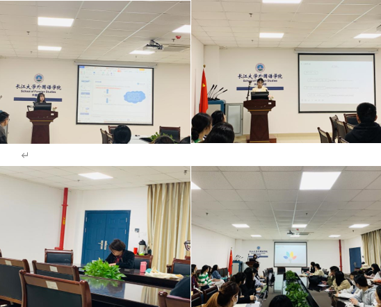 本次报告会伊始,贺荣昭同学从电子档案袋评价概述、电子档案袋外语教学评价研究和翻译教学评价三个部分进行讲述,为电子档案袋外语教学评价在我国的应用和推广提出自己的意见。随后,谈宏慧教授作了相应补充并建议其将教师对电子档案袋的看法纳入考察范围。接着,魏翔宇同学以体验式学习模式为出发点,并结合本校商务英语教学实际情况,探讨了体验式学习模式是否能提高老员工国际贸易实务课学习投入等问题。面对同学们对这一概念的疑惑,谈宏慧教授指出:体验式学习是一个大概念,应将关注点放在体验式学习的具体方式上,比如虚拟仿真平台、企业实习等。