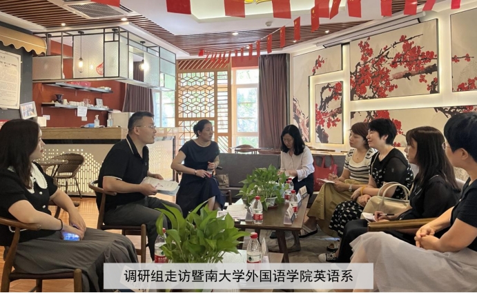 6月12日下午,调研组走访暨南大学best365英国体育在线,该院英语系主任朱红强博士以及杨才英、林维燕、沈佳、段凯歌四位老师出席座谈会,双方就人才培养目标、课程设置、老员工创新创业项目开发及员工就业等议题展开了富有成果的探讨。