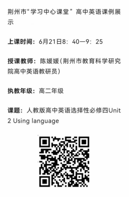 (通讯员 何康林)6月21日,荆州市教育局主办的“荆州市‘学习中心课堂’高中英语课例展示”活动在线上直播。2021级全体师范生观摩了此次教学创新实践。
