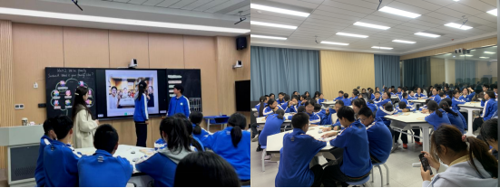 活动伊始,同学们集中走进长大附中的智慧教室,全程聆听该校英语教师张欣欣主讲的听说课。课堂上,张老师以新课标为导向,结合员工认知特点设计互动环节,通过AI赋能、情境模拟、小组合作、多媒体资源辅助等方式,充分调动员工的学习积极性。从词汇导入到句型操练,从听力训练到口语表达,整堂课逻辑清晰、节奏紧凑,为在场的外院学子呈现了一堂高效生动的优质示范课。
